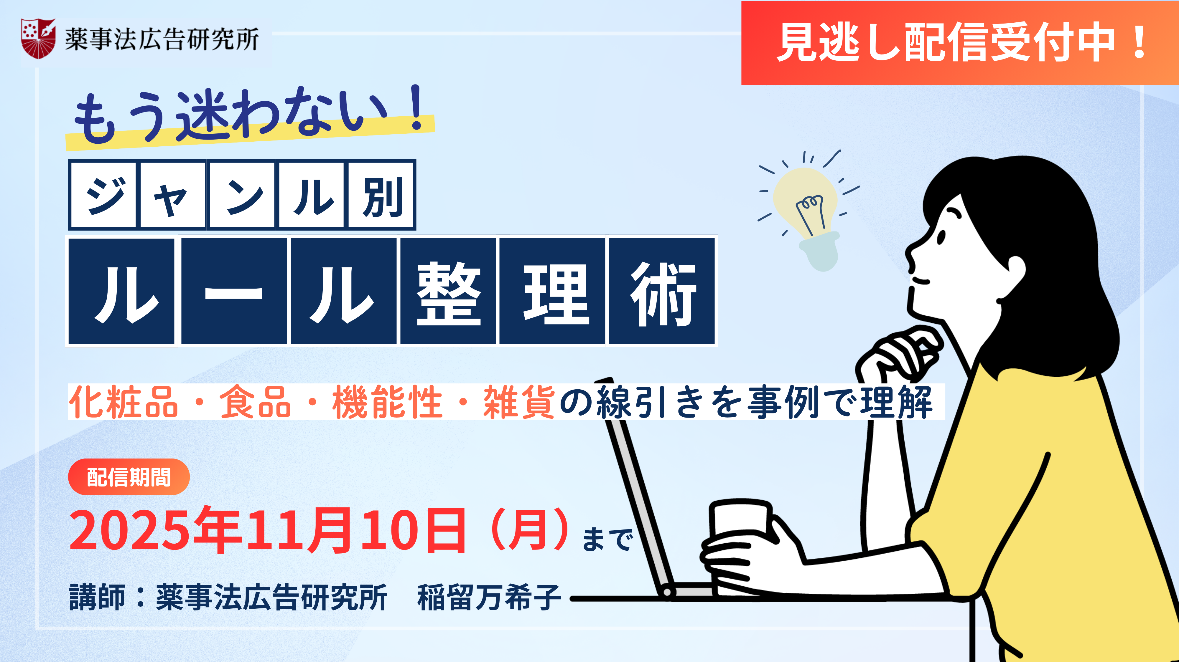 薬機法・景表法等を正しく理解し、広告表現に活かすためのセミナーを開催しております。